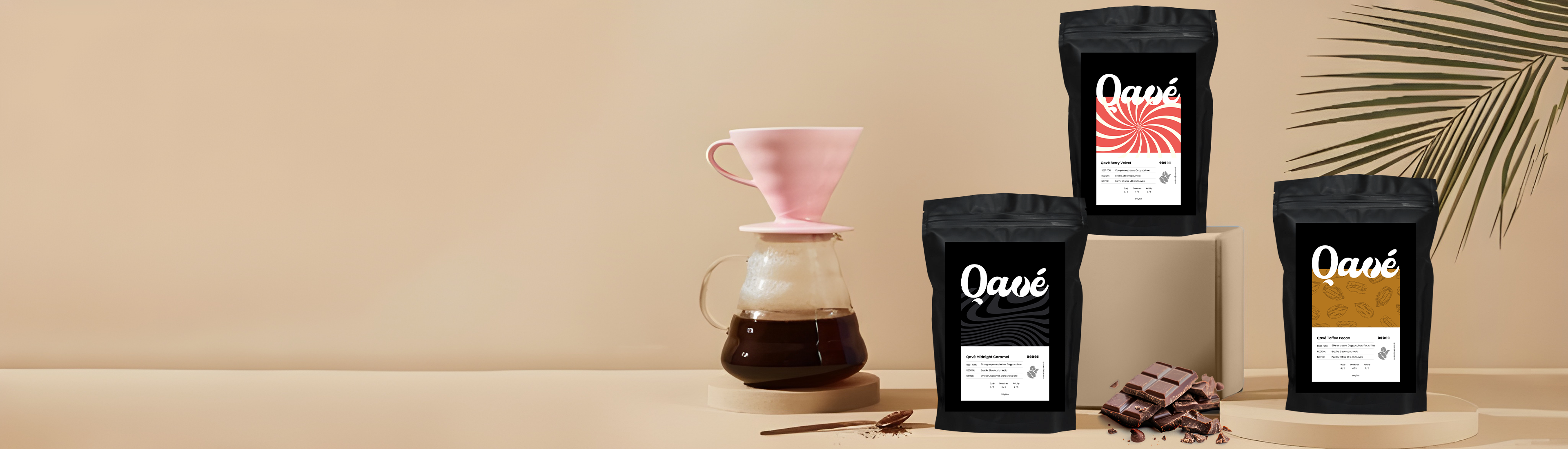 The apostrophe (’) at the end of our name is no accident. It’s a nod to our Arabic origins, while giving Qave’ a sleek, international, and contemporary look. It symbolises the bridge between tradition and modernity — the perfect reflection of our coffee philosophy.
